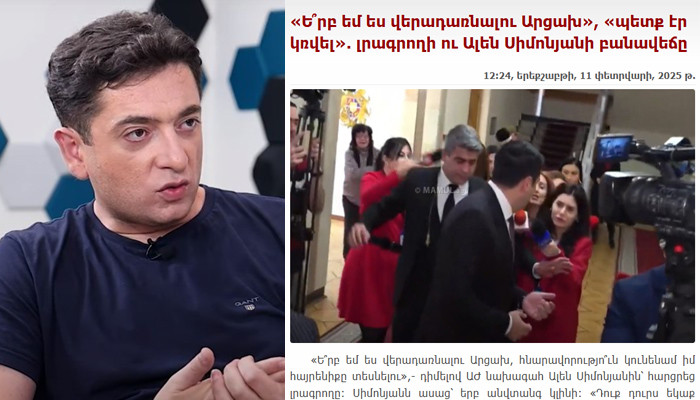 Լրագրող, «24 Նյուզ»-ի տնօրեն Նարեկ Գալստյանի ֆեյսբուքյան գրառումը. «Ալեն Սիմոնյանը, պատասխանելով լրագրողի հարցին, թե ինքը երբ կարող է վերադառնալ Արցախ, ցինիկաբար պատասխանում է, թե «պետք էր կռվել»։