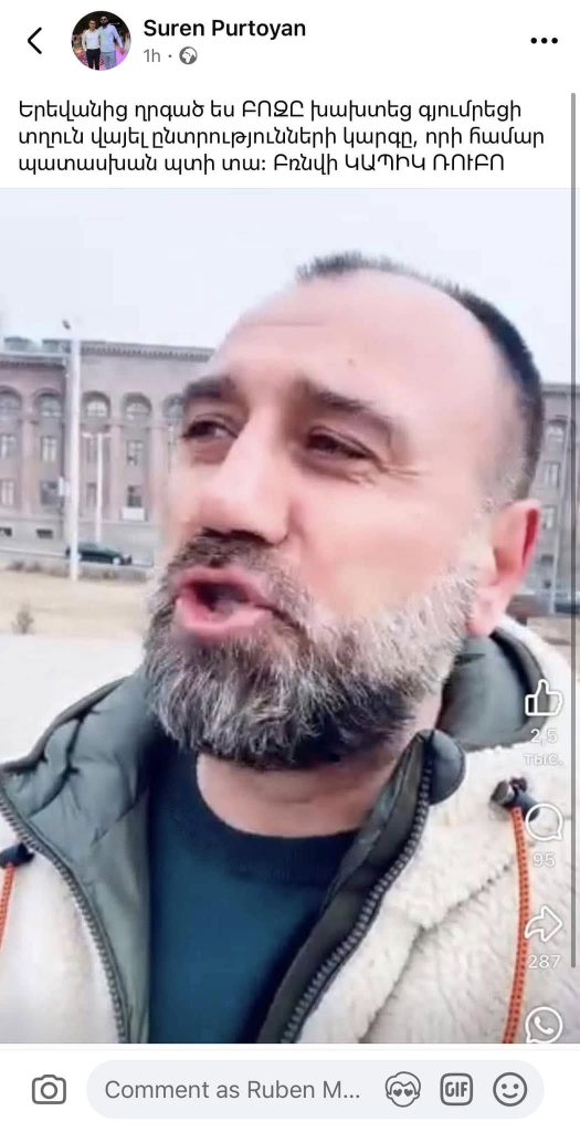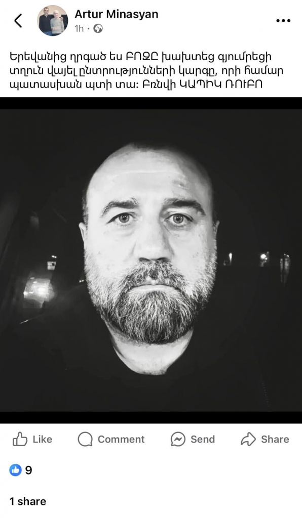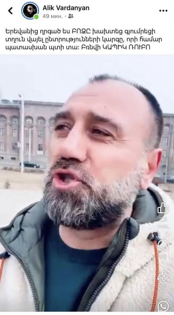 Ակնհայտ է, որ իշխող ուժի համակիրների ու հանրային ծառայողների ներգրավմամբ այս կազմակերպված խուլիգանականությունը գտնվում է ոչ թե ընտրական, այլ քրեական օրենսդրության տիրույթում։ Այն ունի քաղաքական պայքարը «ռազբորկաների» վերածելու սադրիչ միտում, որի վերջնանպատակը թերևս ընտրությունների տապալումն է ու ՔՊ-ական չընտրված քաղաքապետի ԺՊ-ի պաշտոնավարման երկարացումը